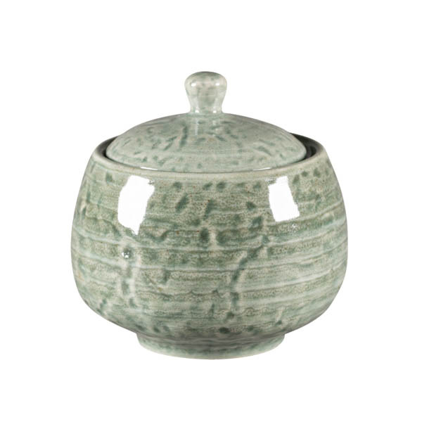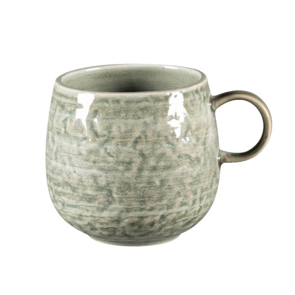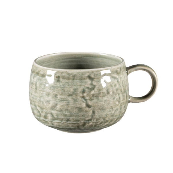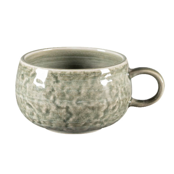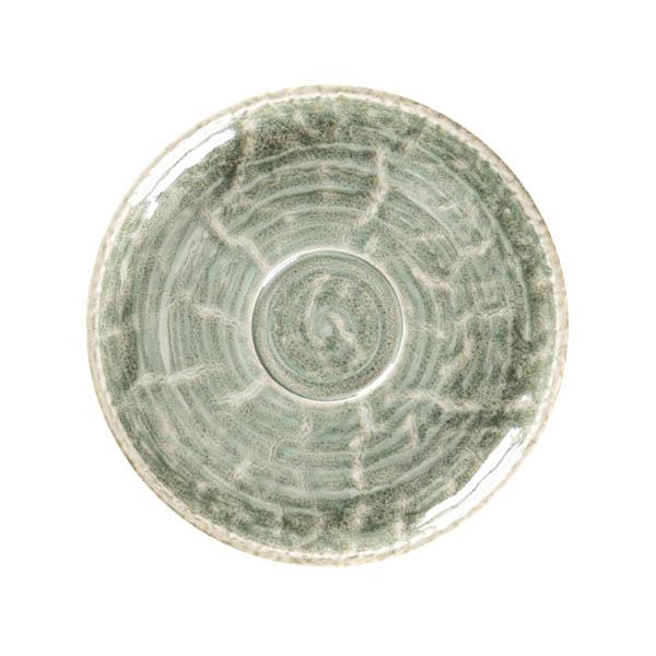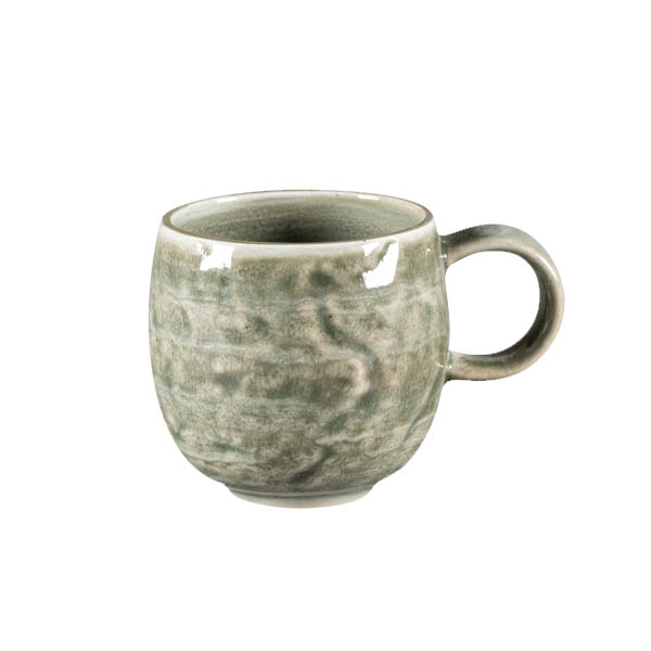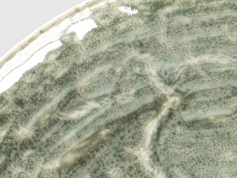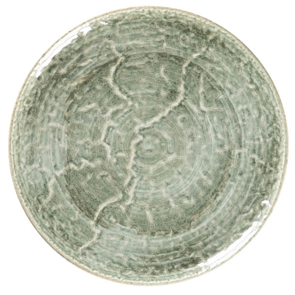 Color "celadón" (verde pálido) de la serie Krush. Una porcelana única por la forma en la que combina dos fuerzas opuestas. Las formas puras y rústicas se combinan con unos diseños pintados a mano en suaves colores tipo acuarela.