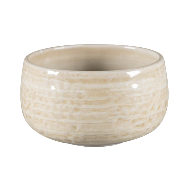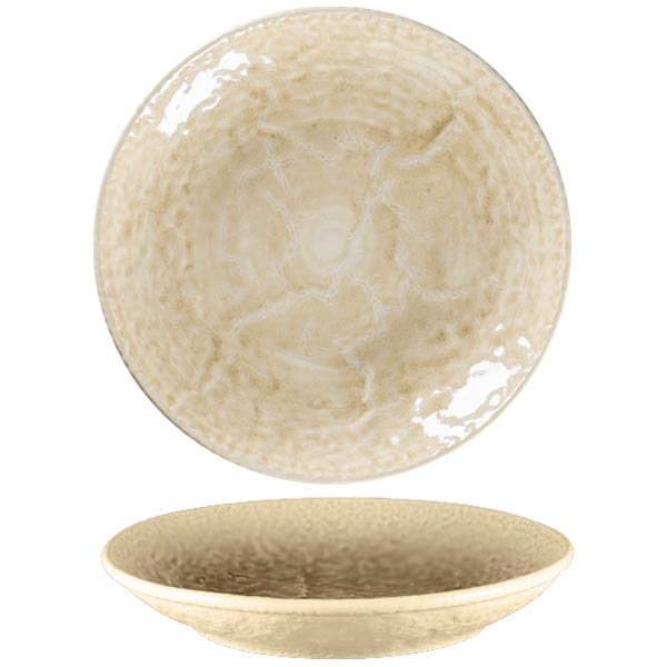 Color "vainilla" de la serie Krush. Una porcelana única por la forma en la que combina dos fuerzas opuestas. Las formas puras y rústicas se combinan con unos diseños pintados a mano en suaves colores tipo acuarela.