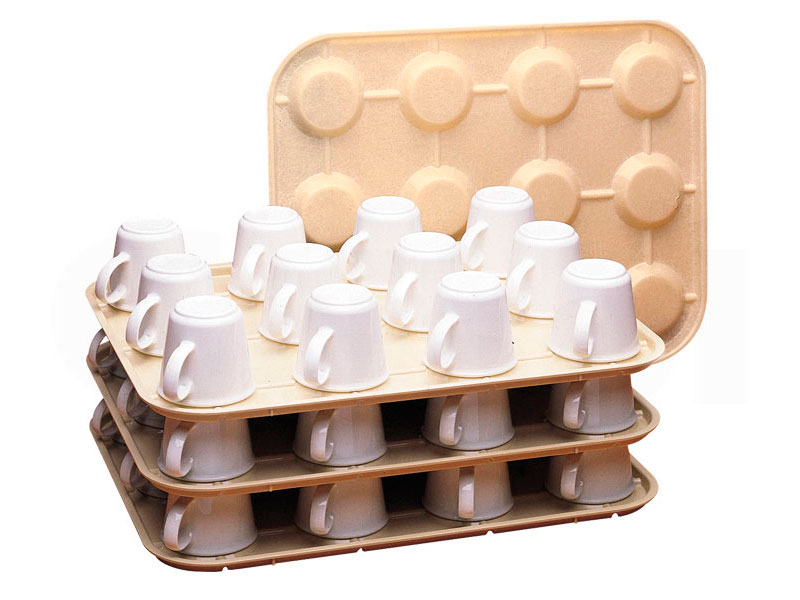 Cesta tamaño completo. Capacidad: 20 huecos de 111 x 88 mm/hueco. Inclinación única que drena el agua de las bases de las tazas.