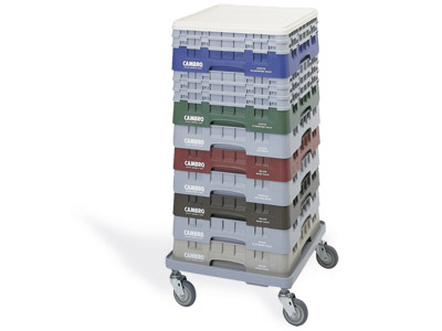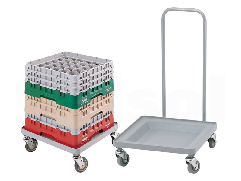 Carros CamDolly para cestas. Disponible en versión con o sin asa. Transporte cómodamente sus cestas llenas de platos o copas hasta el área de banquetas para poner las mesas rápidamente. Disponen de 4 ruedas de 10 cm giratorias sin freno.