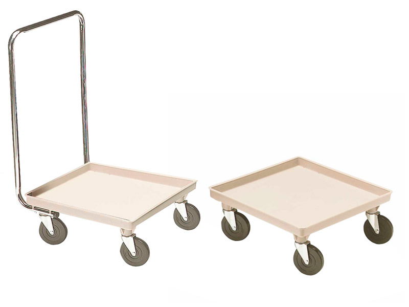 Carro de transporte de plástico con y sin asa. Para cestas de lavado. Apto para cestas de 50 x 50 cm.