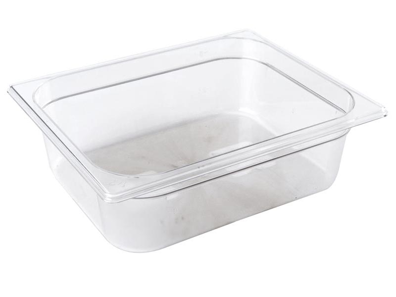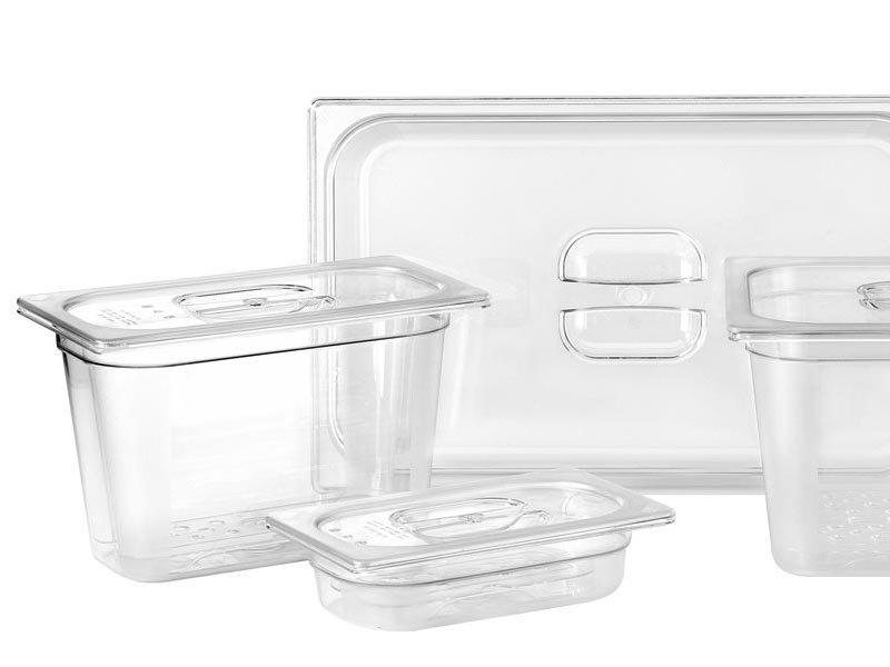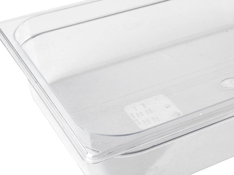 En color tansparente o Negro. Tapa con asa para cubetas Gastronorm de policarbonato.