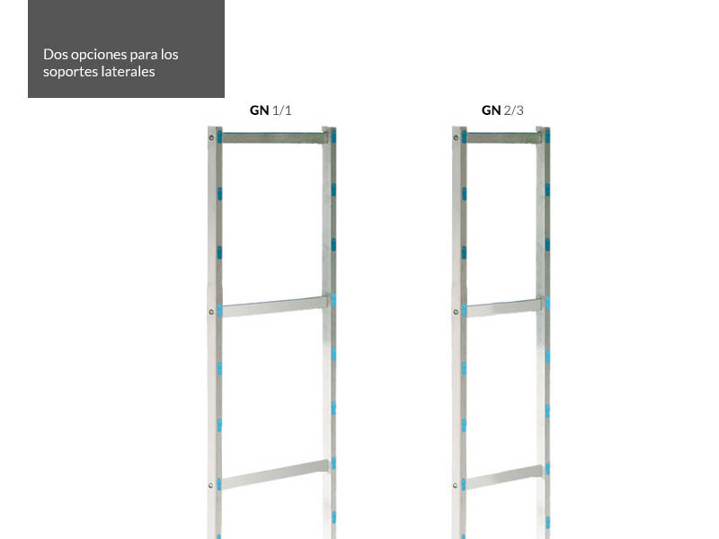 Soportes laterales. Fondo 555 mm (GN 1/1) ó 385 mm (GN 2/3).