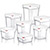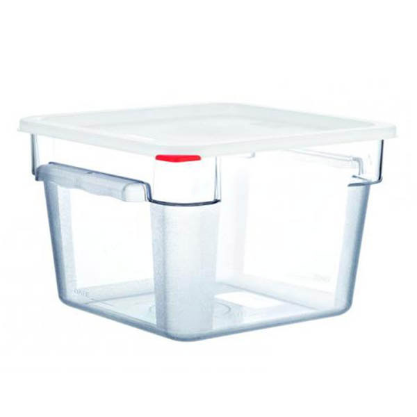 Con regleta de medición, asas incorporadas, cantos redondeados y sistema colorclip. Tapas de polietileno.