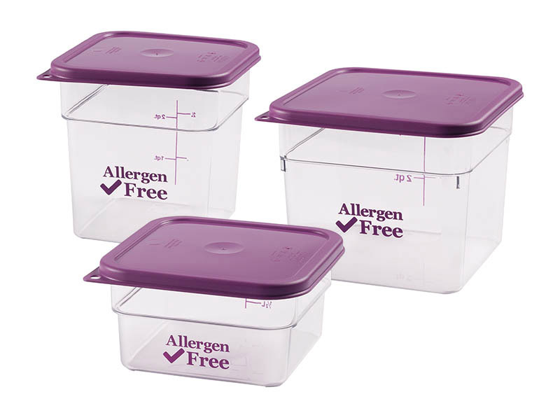 CamSquare Allergen Free. Cubetas cuadradas libres de alérgenos. Fabricados en policarbonato transparente prácticamente irrompible. Resistencia térmica de -40ºC a 99ºC. Marcas de capacidad.