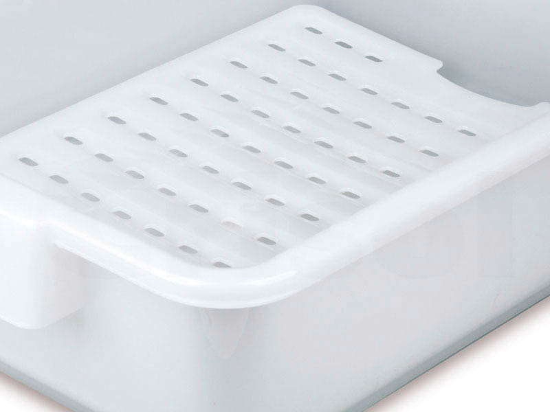 El kit de descongelación está diseñado pensando en la seguridad alimentaria en la cocina profesional. Consta de 3 piezas: tapa, cubeta perforada y cubeta para la recogida del exudado.