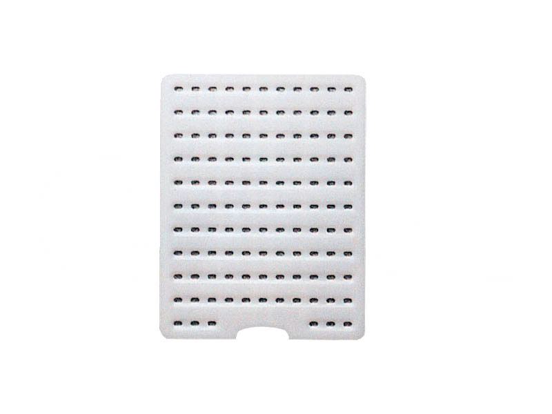 Media cesta. Capacidad: 8 huecos de 111 x 111 mm/hueco. Inclinación única que drena el agua de las bases de las tazas.
