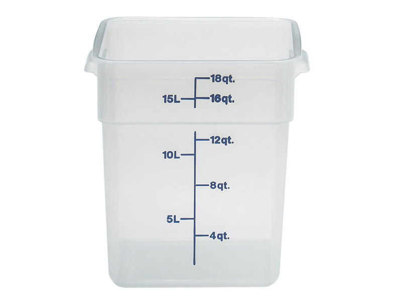 Recipientes cuadrados de polipropileno CamSquare translúcidos. Resistentes a temperaturas de -40ºC hasta 70ºC. Resistente a los impactos, manchas y substancias químicas. Los contenedores grandes disponen de asas para su mejor transporte. Las tapas se venden por separado de los recipientes.