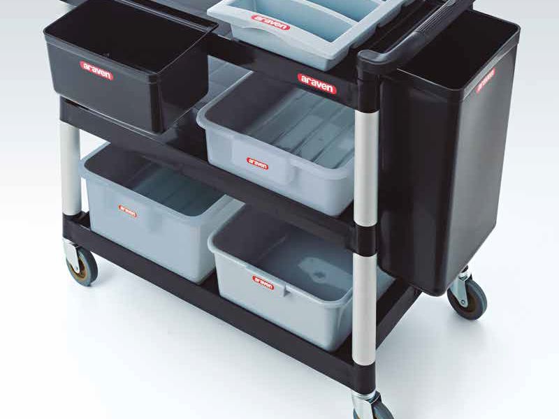 Se usan para recoger mesas (levantar mesas), almacenar/transporta vajilla y menaje y cuentan con asidores laterales para facilitar el transporte.Fabricadas en polipropileno PP(5)