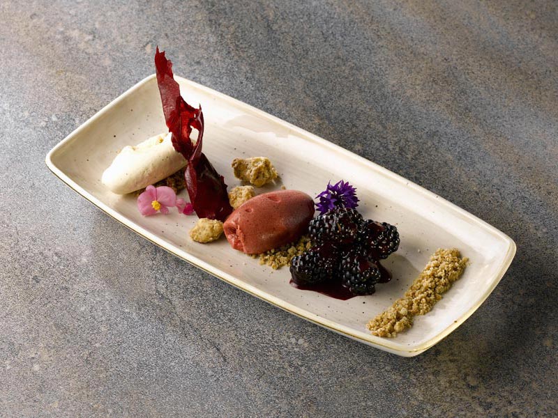 El relieve de Vibes dirige la mirada hacia lo esencial: la presentación de la comida. Mientras, crea una sensación de equilibrio natural y lujo relajado.