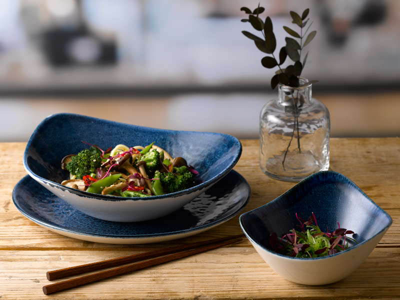 Vajilla de gres con un diseño delicado. Calidad superior con una estética refinada.