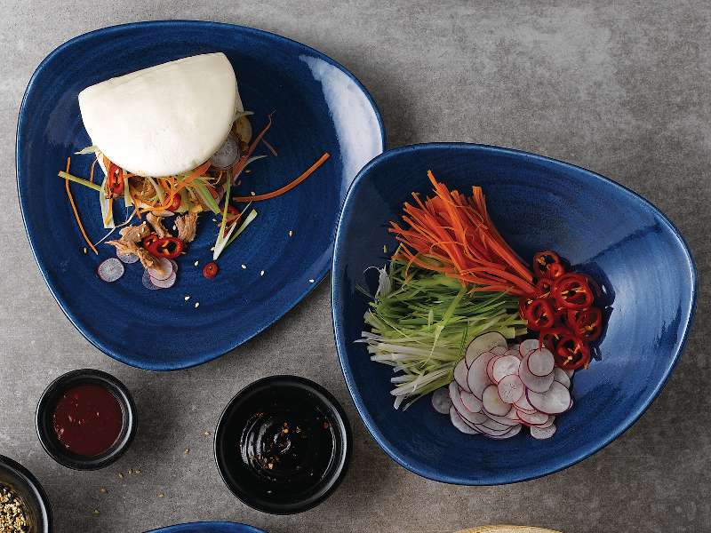 Menu Shades está decorado con un esmalte mate y una textura jaspeada, realzando la superficie de cada pieza. Fabricado en un cuerpo de porcelana vitrificada.