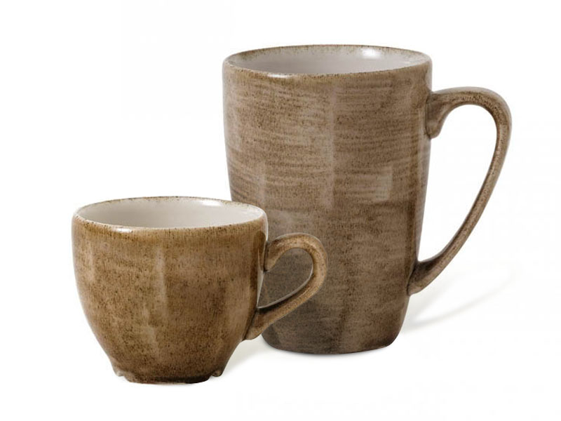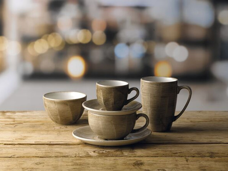 Cada pieza posee la solidez de la porcelana y la apariencia de la cerámica gracias a un esmalte ultraresistente y no poroso pulverizado a mano. Inspirado en materiales minerales.