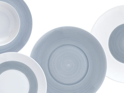 Platos llanos sin ala (forma NANO) de Ø 31, 29, 27, 24, 21, 18 y 15 cm. Disponible en 6 colores dentro de la colección NEOFUSIÓN. Inspirado en materiales minerales.