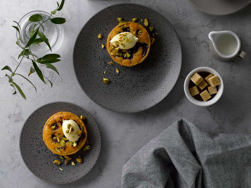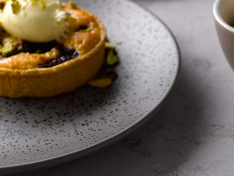 Menu Shades está decorado con un esmalte mate y una textura jaspeada, realzando la superficie de cada pieza. Fabricado en un cuerpo de porcelana vitrificada.