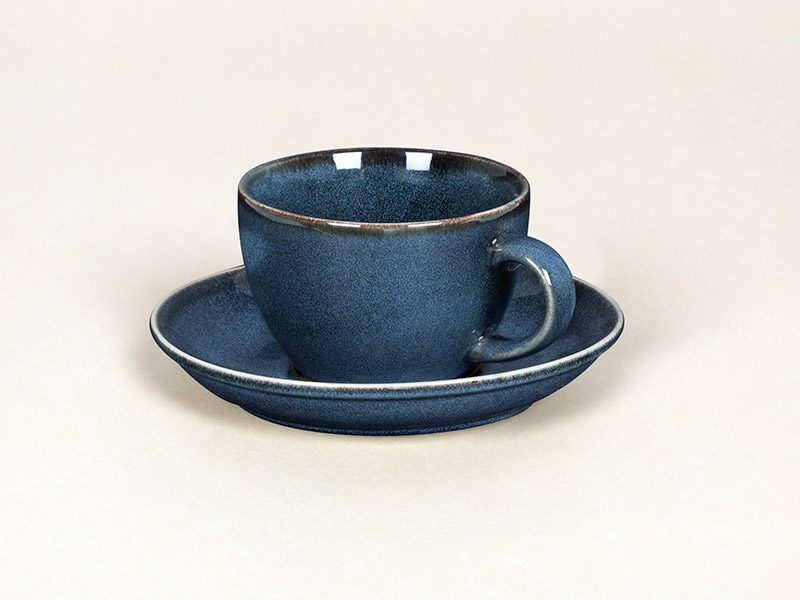 Opal Blue forma parte de la línea StoneWare de gres porcelánico. Su distintivo esmalte en tonos azul profundo que evoca la calma del océano, aplicado manualmente, confiere a cada pieza un carácter único y una belleza natural que recuerda a la piedra pulida por el tiempo. Moldeado por presión con arcilla refinada y esmaltado por inmersión interior y exterior, asegurando una cobertura homogénea. La base se limpia con precisión y se añade a mano una capa final que realza su acabado artesanal.