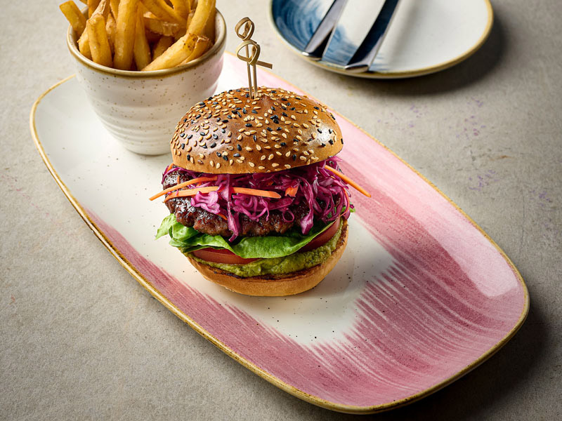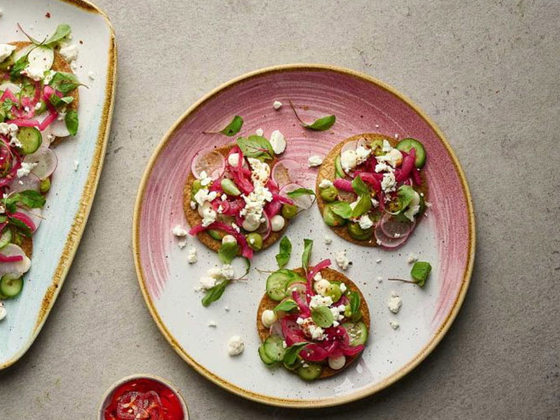Blueberry es un tono contemporáneo perfecto para presentar ingredientes frescos.
