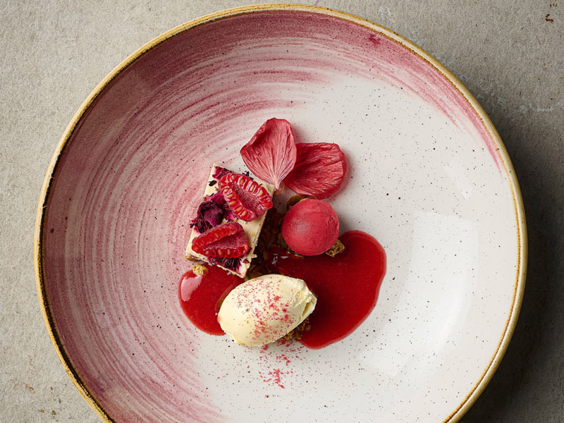 Plato postre Nabur 2 zonas 24 x 20 cm. Disponible en 6 colores dentro de la colección NEOFUSIÓN. Inspirado en materiales minerales.