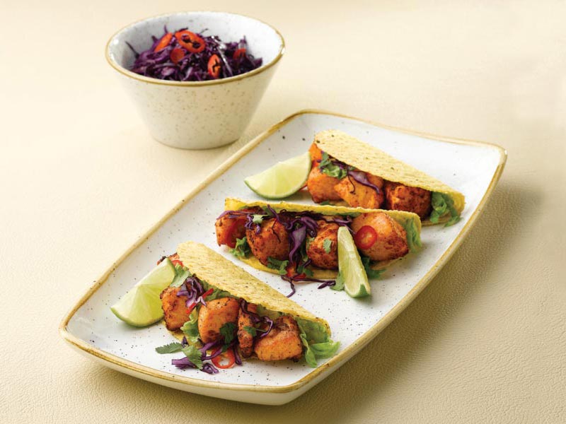 Blueberry es un tono contemporáneo perfecto para presentar ingredientes frescos.