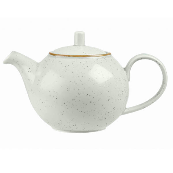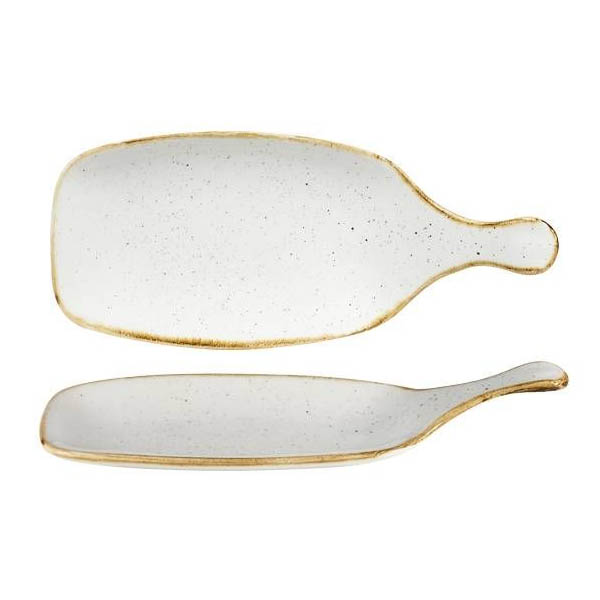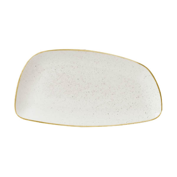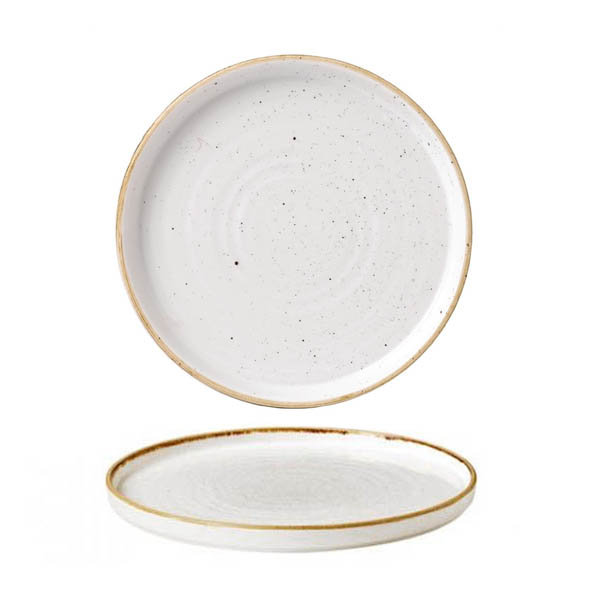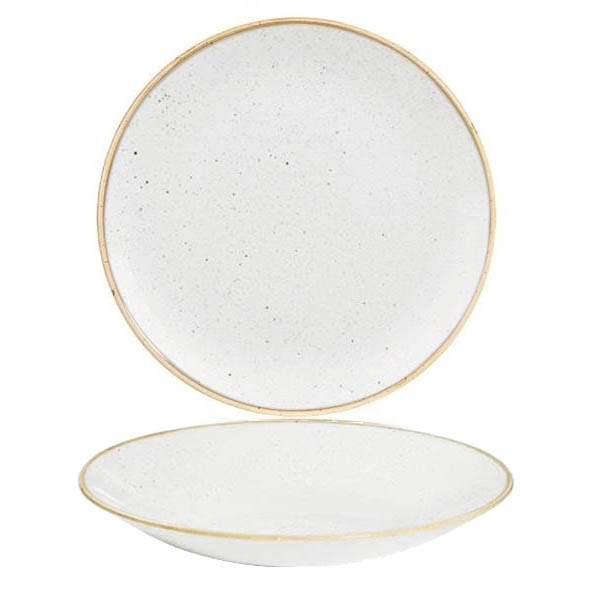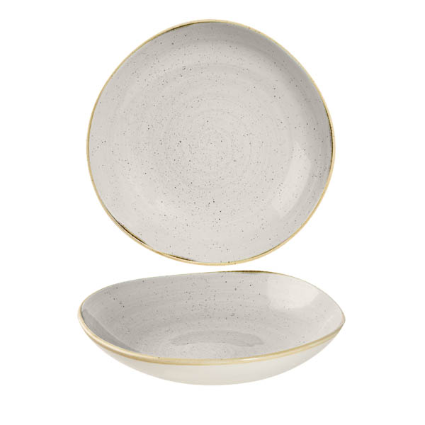 Stonecast es el nuevo decorado realizado a mano con esponja de Churchill. No hay dos piezas iguales. Borde rústico de un color dorado y fondo moteado en color huevo de pato azul o blanco.
