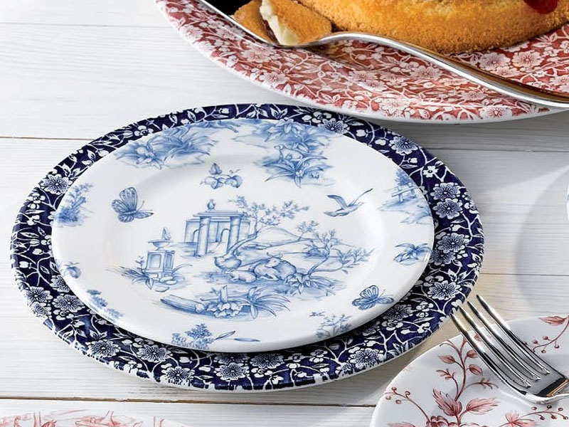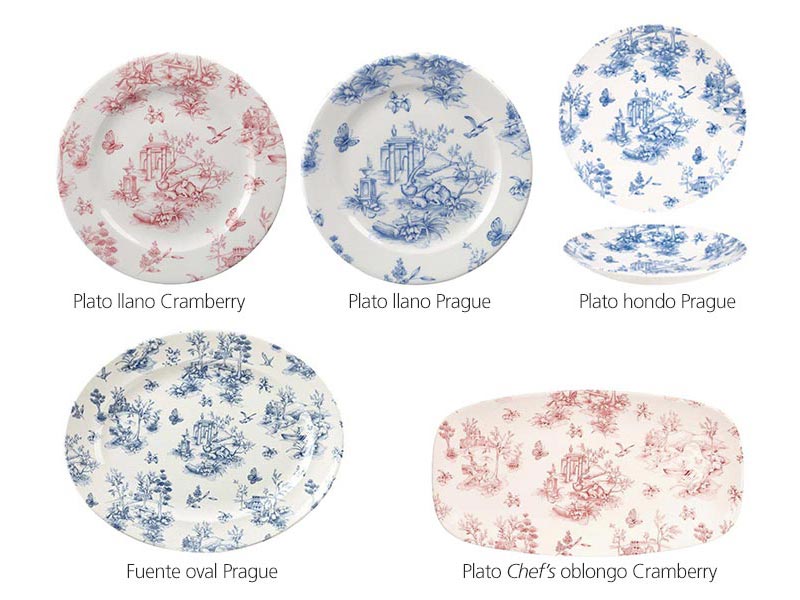 Decorado clásico en colores azul o rosa. Impresiones vintage basadas en antiguos diseños propios.