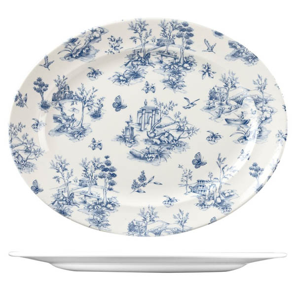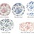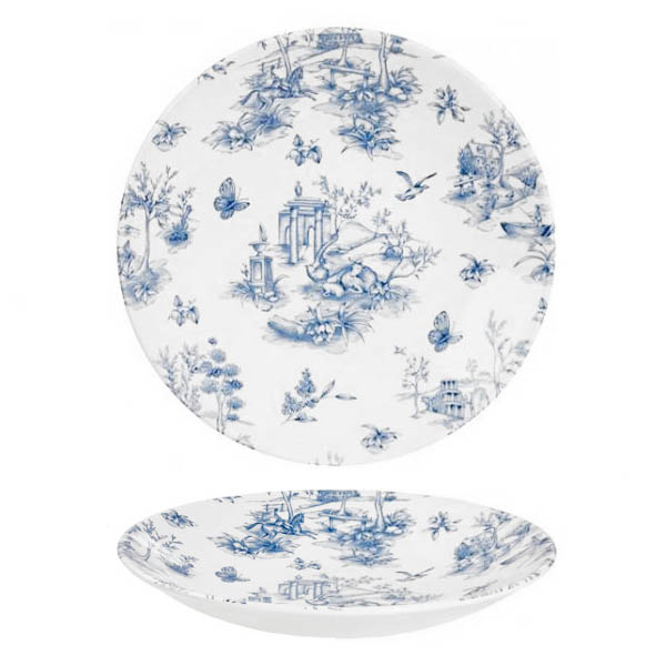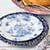 Decorado en colores azul claro, azul oscuro o rosa con flores en color blanco. Impresiones vintage basadas en antiguos diseños propios.